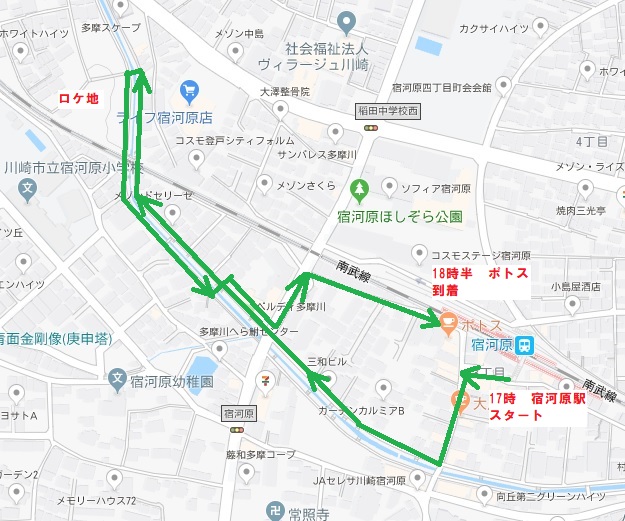 17時に宿河原駅に到着し、そこから出発する予定です。